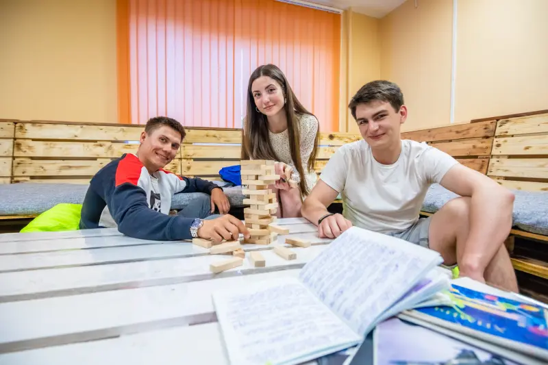 In all dormitories of PetrSU, current and major repairs have been carried out, furniture has been replaced, the Internet has been installed, shower and laundry rooms, rooms for independent studies, cultural leisure, assembly halls, and rooms for accommodating students' parents have been equipped. The kitchens are equipped with electric stoves. At PetrSU, a healthy lifestyle is actively promoted, which is why dormitories are equipped with sports halls, fitness halls, tennis rooms, and study rooms for independent activities. The dormitories have a pass system using special technical means and sentries, where alarm buttons are installed.