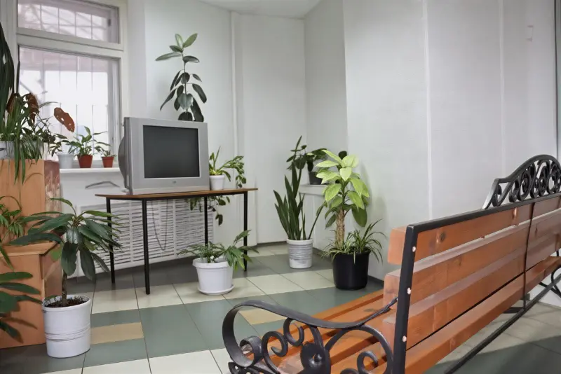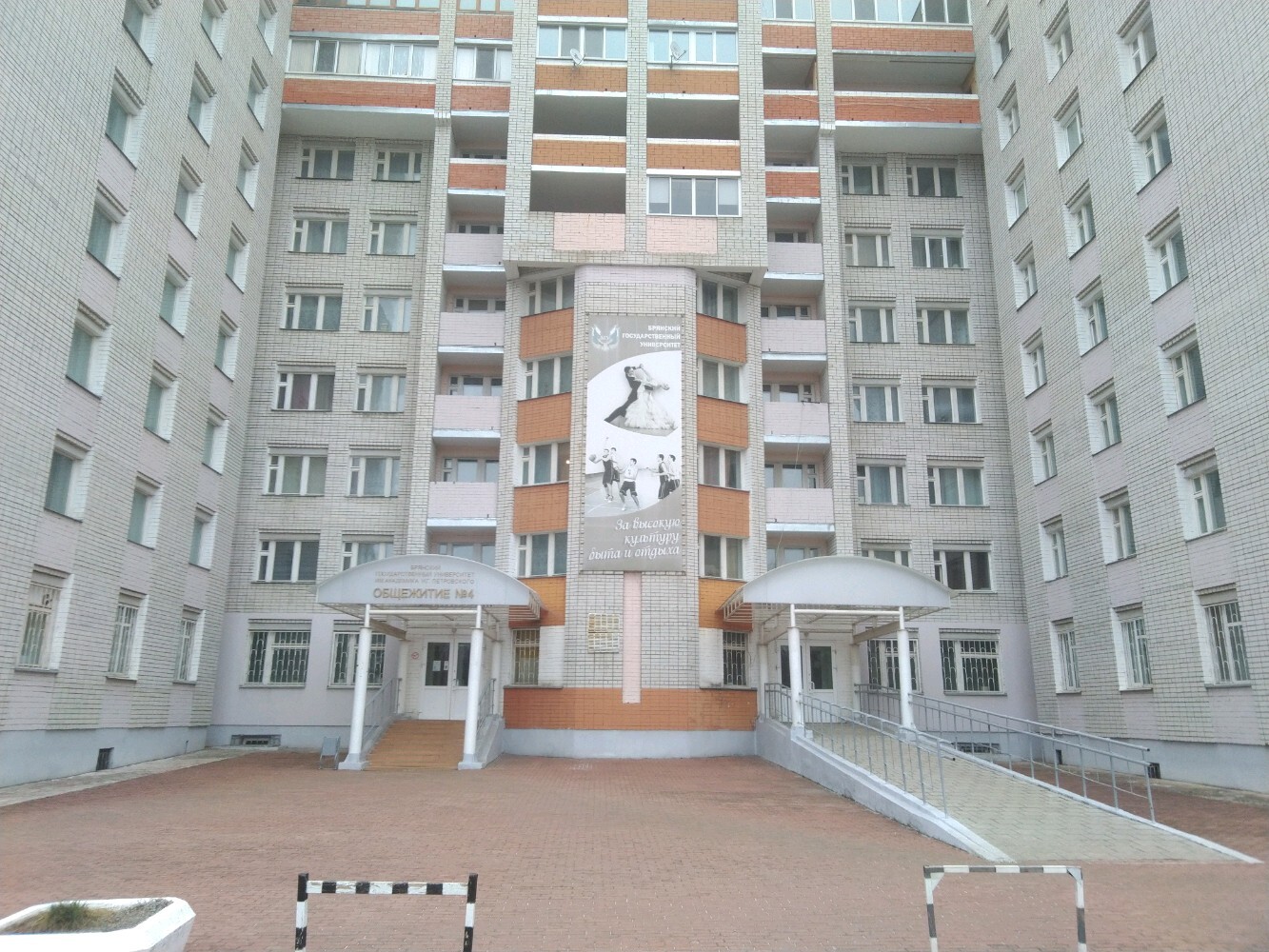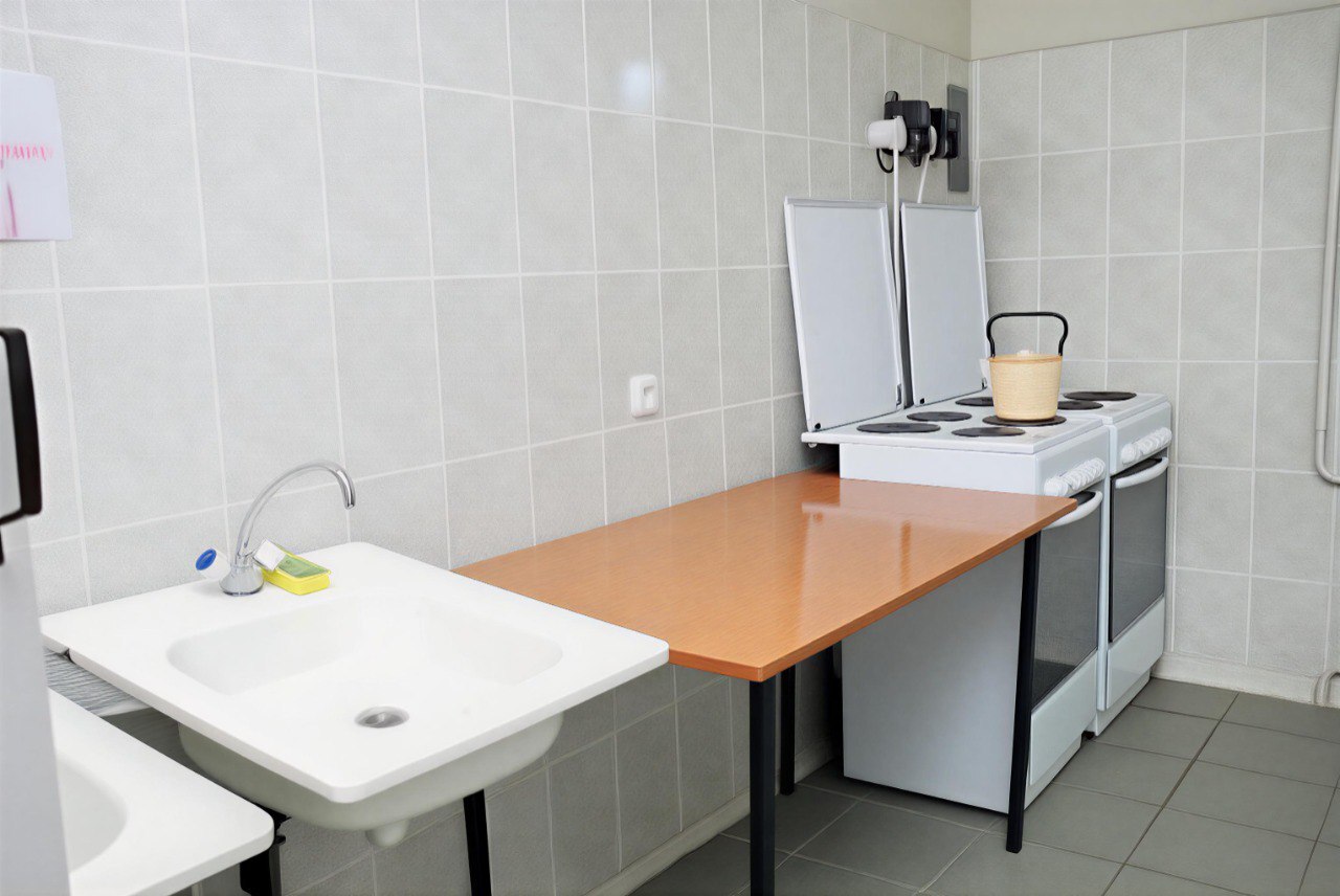 The dormitories of buildings 1A and 1B have a sectional layout with 4 rooms in each section. The dormitories of buildings 2A and 2B have a sectional layout with 2 rooms in each section. On each floor, kitchens and living rooms are equipped for residents. In building No. 4, there is a sectional-block layout. All dormitories have central water supply, heating, sewage, and are equipped with elevators. Students living in the dormitories are provided with the necessary equipment. In Building 4, additional conditions have been created for unimpeded access to the dormitory and accommodation for persons with disabilities (ramp, freight elevator). The student campus complex includes: a sanatorium-preventorium, a paramedic health center, an information center, a communication department, a grocery store, a shoe repair workshop, and a hairdresser.
