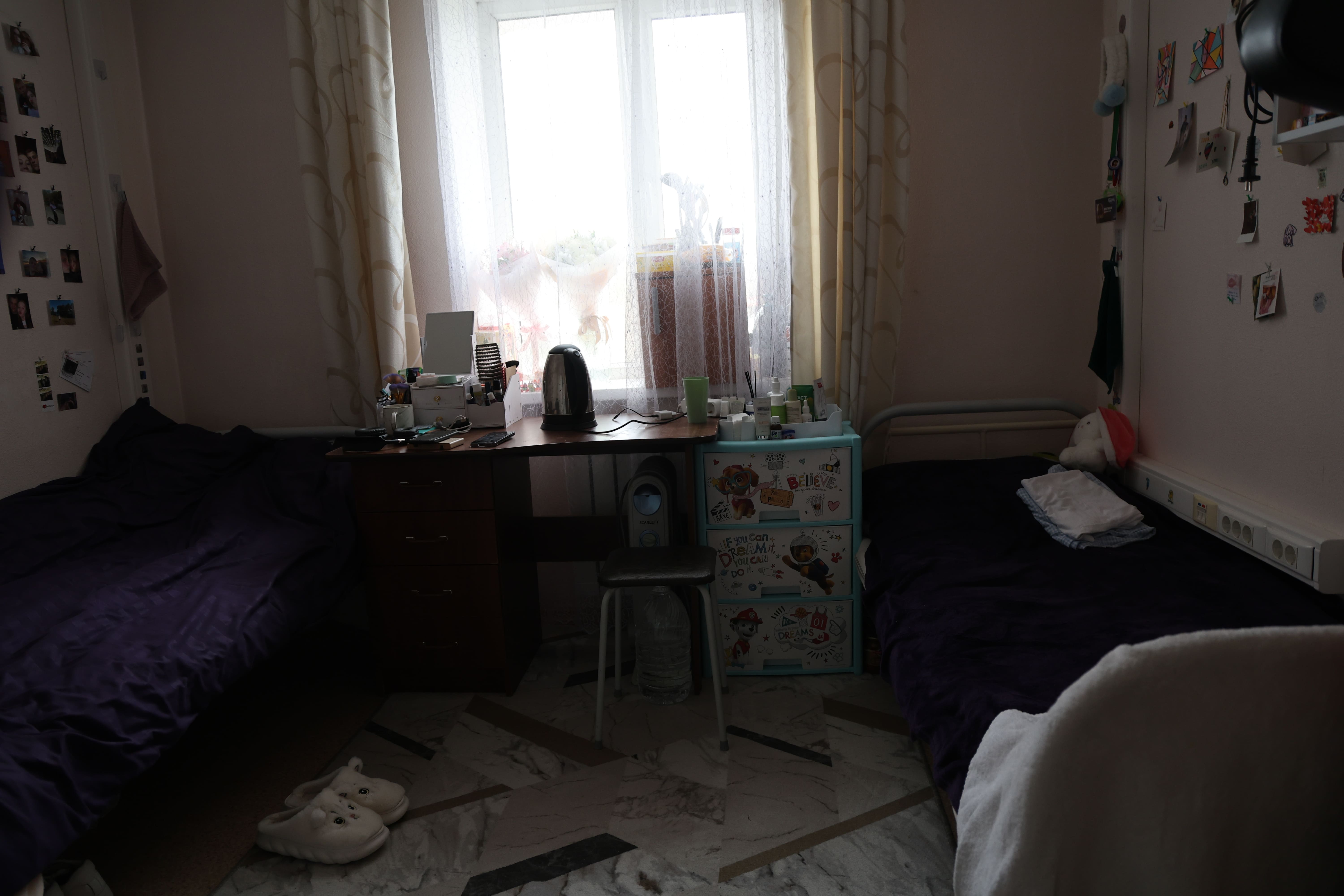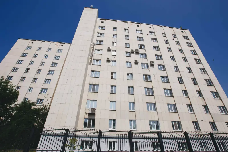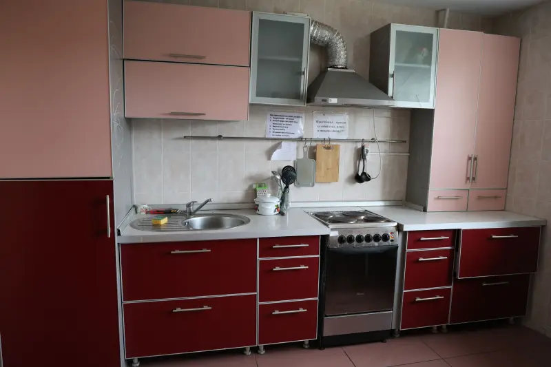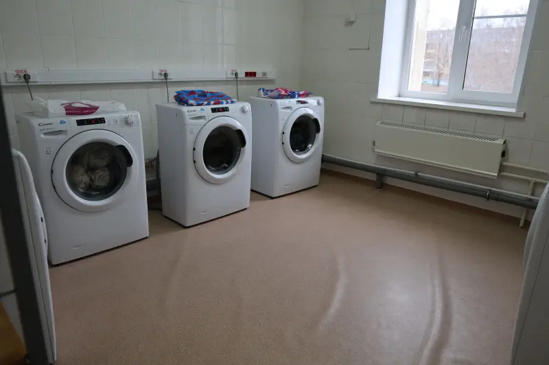 Block-type dormitories are multi-story buildings. Each residential block has 4 rooms (2 rooms for two people and 2 rooms for 3 people), with a common shower and toilet per block. Each floor has a kitchen equipped with everything necessary (refrigerator, stove, hood, working surfaces for cooking). Each dormitory has a laundry room with washing machines and a room for drying clothes.