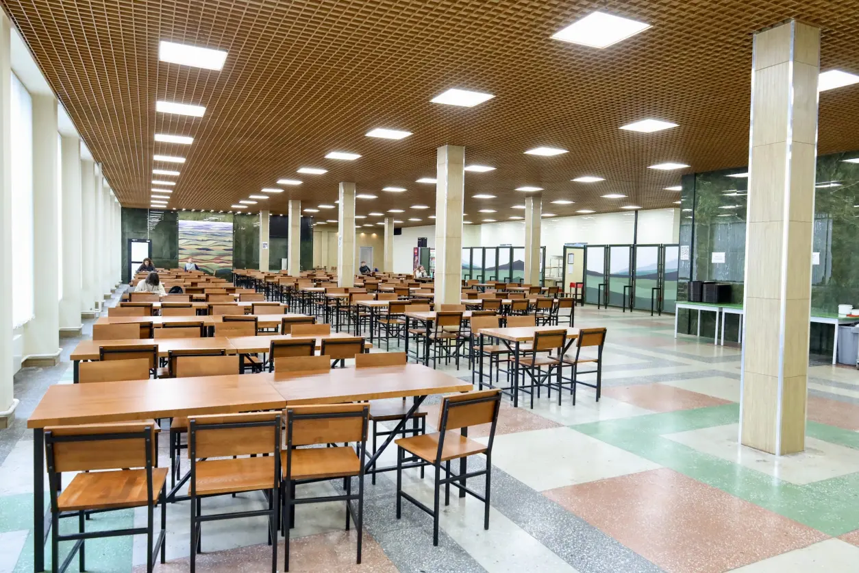 En los edificios académicos de la universidad se organiza la alimentación caliente de los estudiantes y trabajadores. El sistema de organización de la alimentación de los trabajadores y estudiantes en la universidad incluye un comedor, que consiste en una sala de comedor con 500 asientos y cuatro bufé, ubicados en los edificios académicos de la universidad.