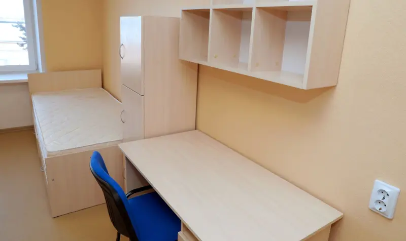 निवास के समय प्रत्येक निवासी को घरेलू सामान प्रदान किया जाता है: बिस्तर, टेबल, कुर्सी, मैट्रेस। प्रत्येक निवास स्थान में अलमारी और लिखने की मेज उपलब्ध होती है। प्रत्येक विभाग में - नहाने का कमरा, धोने का स्थान, टॉयलेट केबिन।
