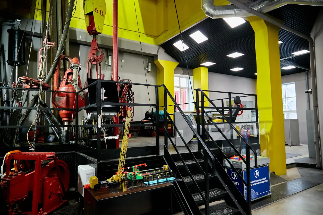 155 मीटर गहराई के कुएं के साथ अद्वितीय शिक्षण सिम्युलेटर। यूजीएनटीयू के छात्रों को परिसर से बाहर निकले बिना वास्तविक तेल क्षेत्र के करीब स्थितियों में व्यावहारिक ड्रिलिंग कौशल का अभ्यास करने की अनुमति देता है।