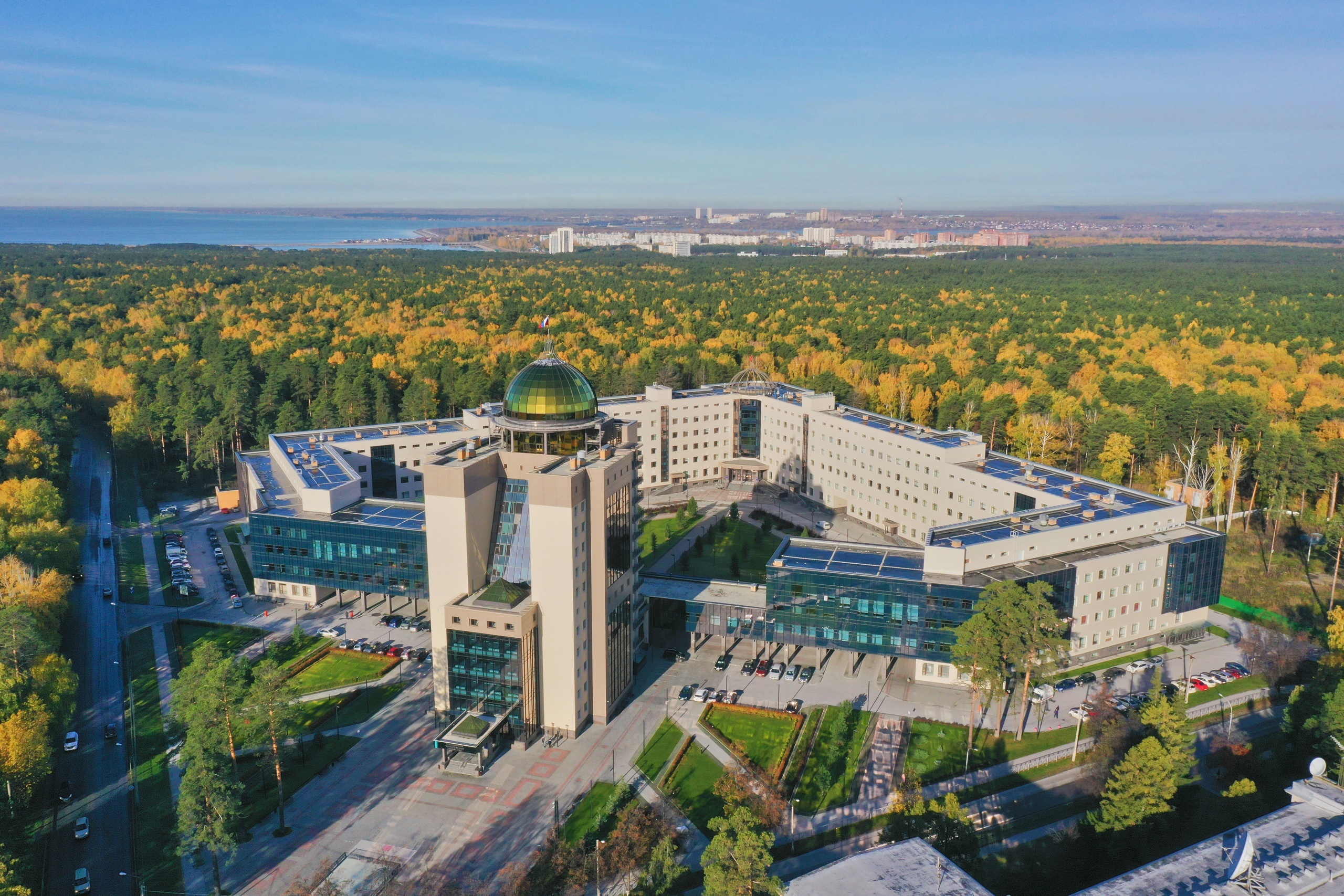 Наздикии комил ба табиат дар Академгородок бо инфрасохтори рушдёфта муваффақона муттаҳид мешавад. Маҳз дар ҳамин ноҳияи бонуфуз донишгоҳи мо – дар маркази илмӣ, ки барои фаъолияти муваффақонаи таълимӣ ва илмӣ ва зиндагии бароҳат шароити комил фароҳам овардааст, таъсис ёфтааст. НГУ бо шуъбаи Сибирии Академияи илмҳои Русия зич алоқаманд аст. Донишҷӯёни НГУ аз курсҳои аввал ба таҳқиқоти илмӣ дар институтҳои СО РАН машғул мешаванд ва, ҳангоми дохил шудан ба донишгоҳ, амалан аллакай дар вақти таҳсил ба илми воқеӣ машғул мешаванд. Яке аз дастовардҳои асосии НГУ – сатҳи умумии омодагӣ, тарбияи қобилиятҳо ба корҳои тадқиқотӣ ва эҷодӣ мебошад.